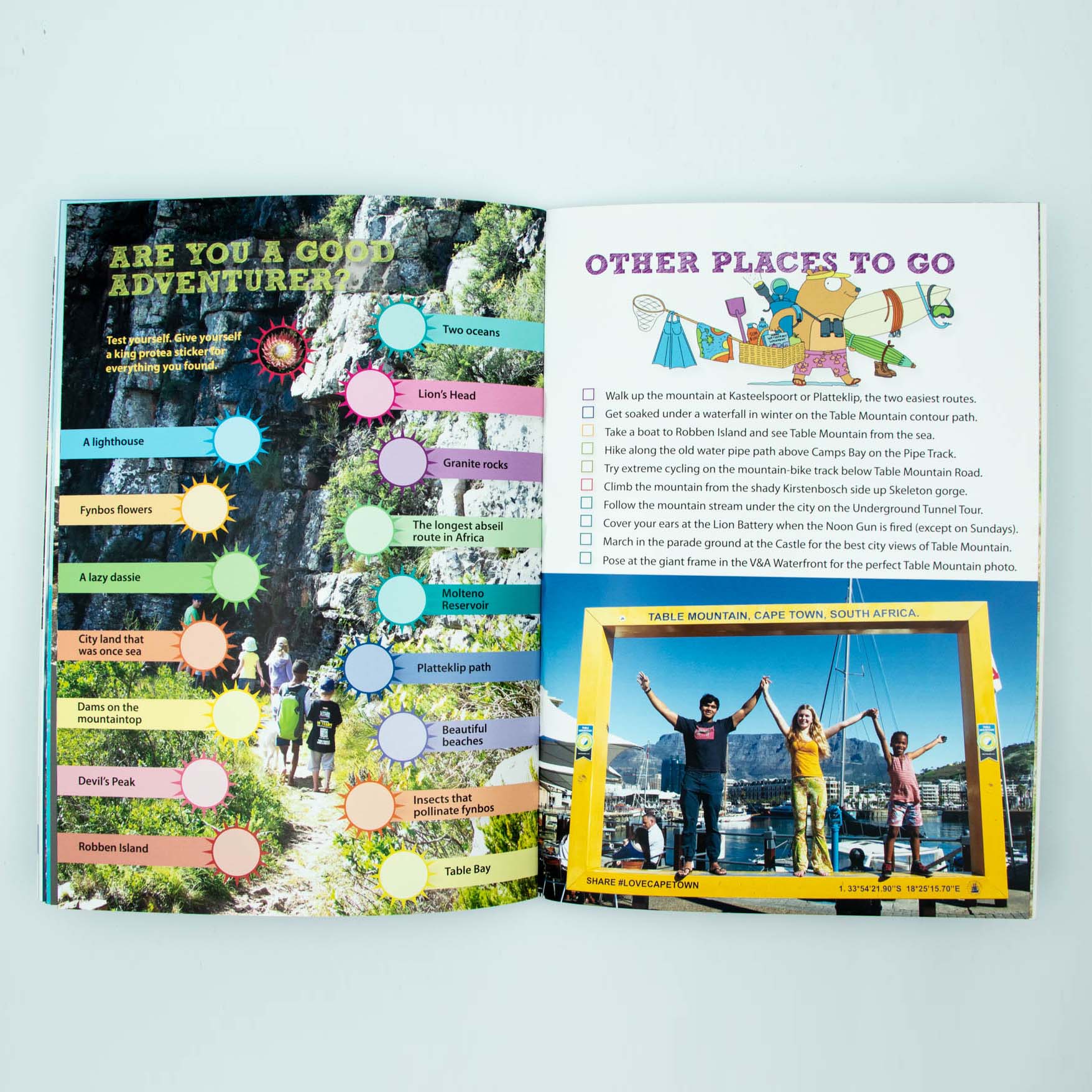 Have an adventure on Table Mountain! Another Young Explorers activity book. Guided Adventure trail on Table Mountain for children age 5 to 12. Easy walk of 2–3 hours | Easy to use and to read aloud | Lots of activities | Stickers | Covers nature, history, and culture. Author Suzie Joubert. 210 x 297mm, 32 pages, softcover.